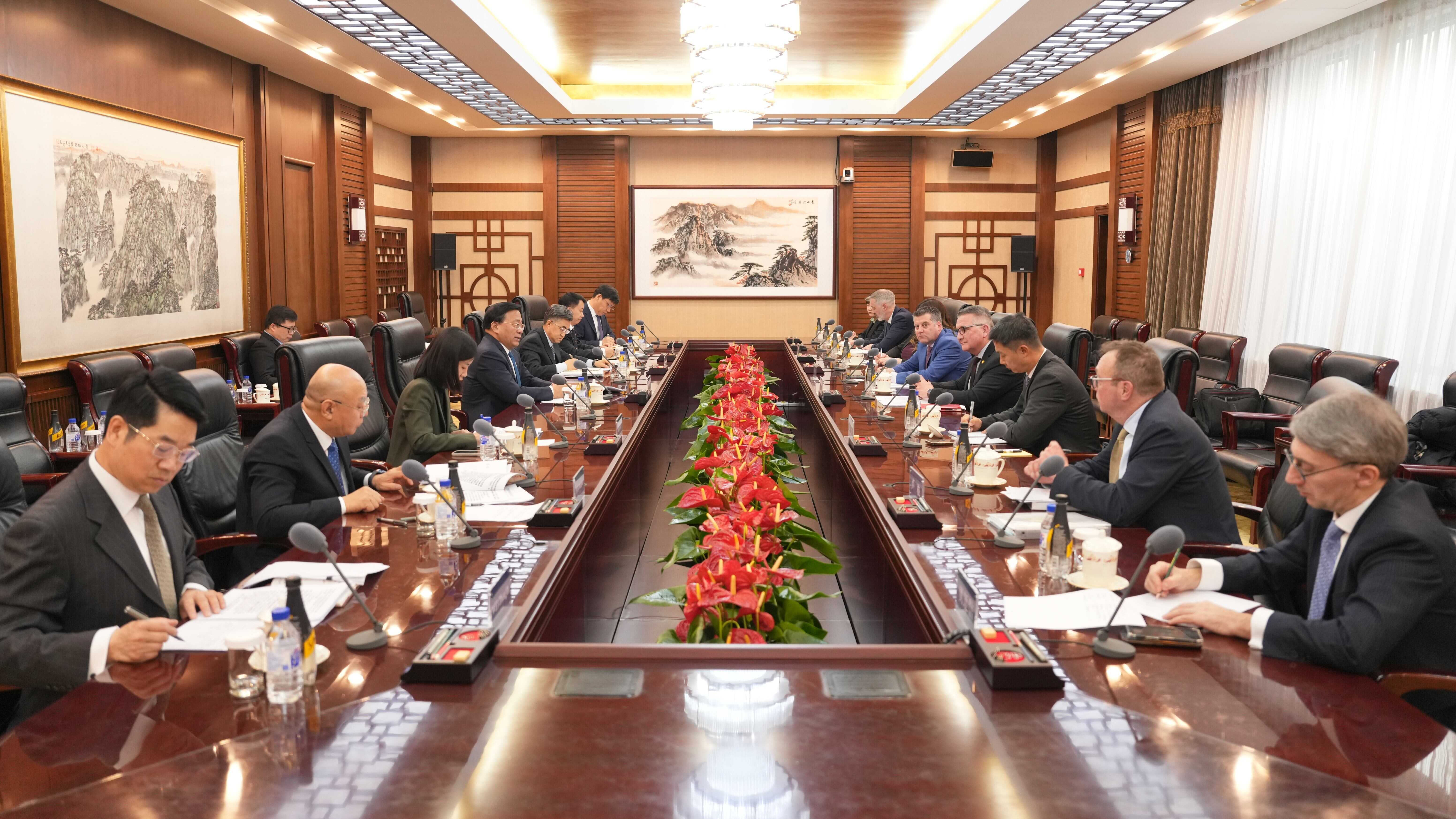 1月15日,农业农村部部长韩俊在京会见加拿大农业及农业食品部部长希思·麦克唐纳,双方就中加农业未来合作重点领域和方向交换意见。
