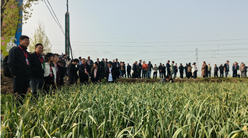 4月10日上午,参会代表先后走进兰陵蔬菜产业核心示范区,观摩大蒜、胡萝卜种植基地,开启了一场沉浸式的绿色防控实践之旅。