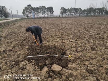 技术人员在田间现场取样调查草地贪夜蛾越冬蛹情况