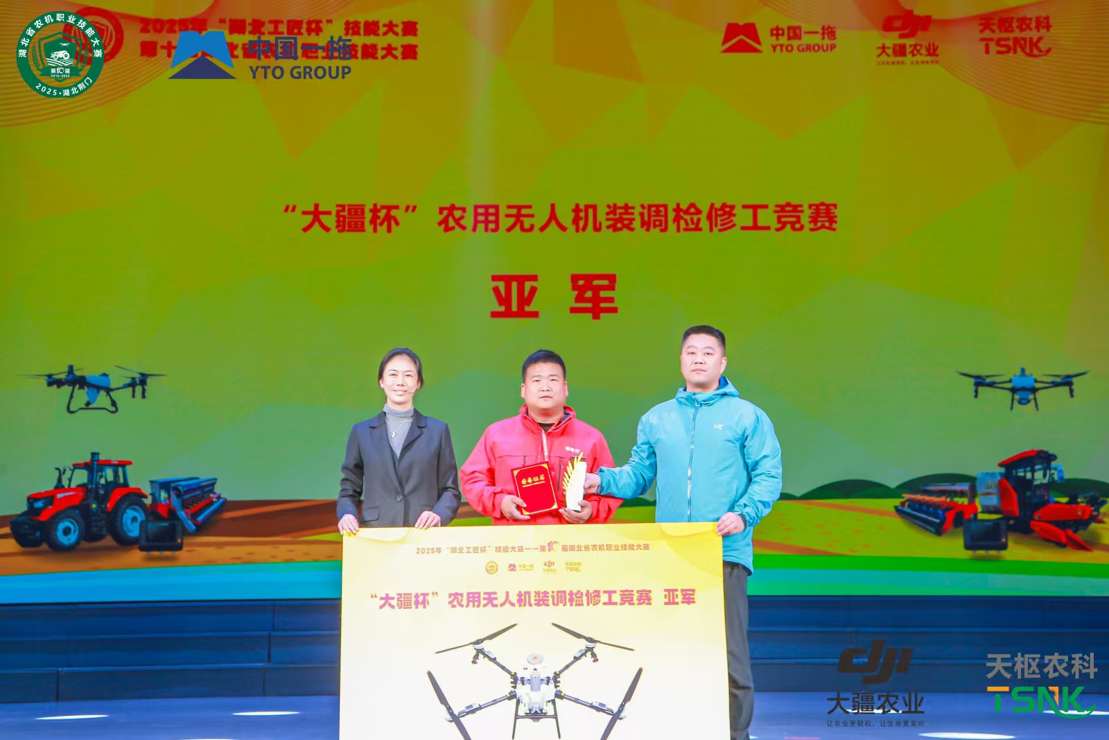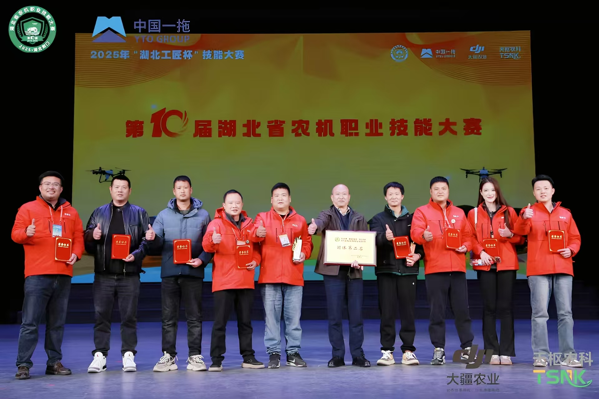 在单项竞赛中,武汉选手表现亮眼。在“东方红杯”农机修理工竞赛中,周催凭借精湛的修理技艺荣获优胜奖,展现了武汉农机修理人员扎实的专业功底;“大疆杯”农用无人机装调检修工竞赛中,刘权一路过关斩将夺得亚军,吴峰、郭子豪、张晓雅也凭借出色的操作技能斩获优胜奖,充分体现了武汉在农用无人机应用与维护领域的较高水平;在“天枢杯”北斗田间作业赛中,郭松在拖拉机作业组获奖,卢贤、胡仨在无人机作业组表现突出,肖茂利则在收割机作业组荣获奖项,他们在田间作业中的精准操作,彰显了武汉农机手对先进农机技术的熟练运用能力。