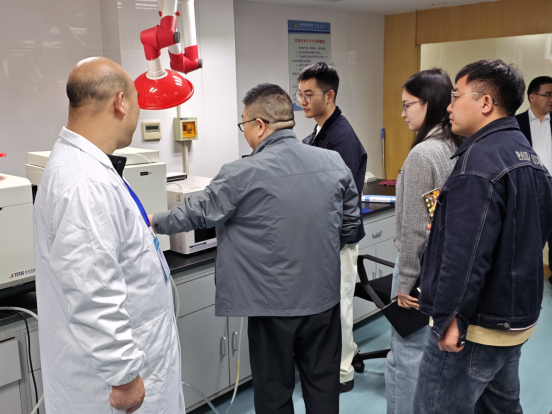 在参观实验室环节,参会人员在中心高级农艺师黄微同志引导下,参观了中心投入品分析、重金属检测、农产品畜产品水产品药物残留检测室等三十余间专业实验室。中心配备高分辨液质联用仪、三重四级杆气质联用仪、电感耦合等离子体质谱联用仪等211台高端检测设备,可开展检测参数达499项,全面覆盖中心职能中农产品质量安全各类检测项目。参观过程中,三地技术人员围绕实验室管理、样品检测流程、仪器使用与维护等展开热烈交流,现场互动频繁,针对基层检测机构能力提升、技术优化、风险防控等议题深入探讨,在交流中相互启发、取长补短,气氛积极融洽。