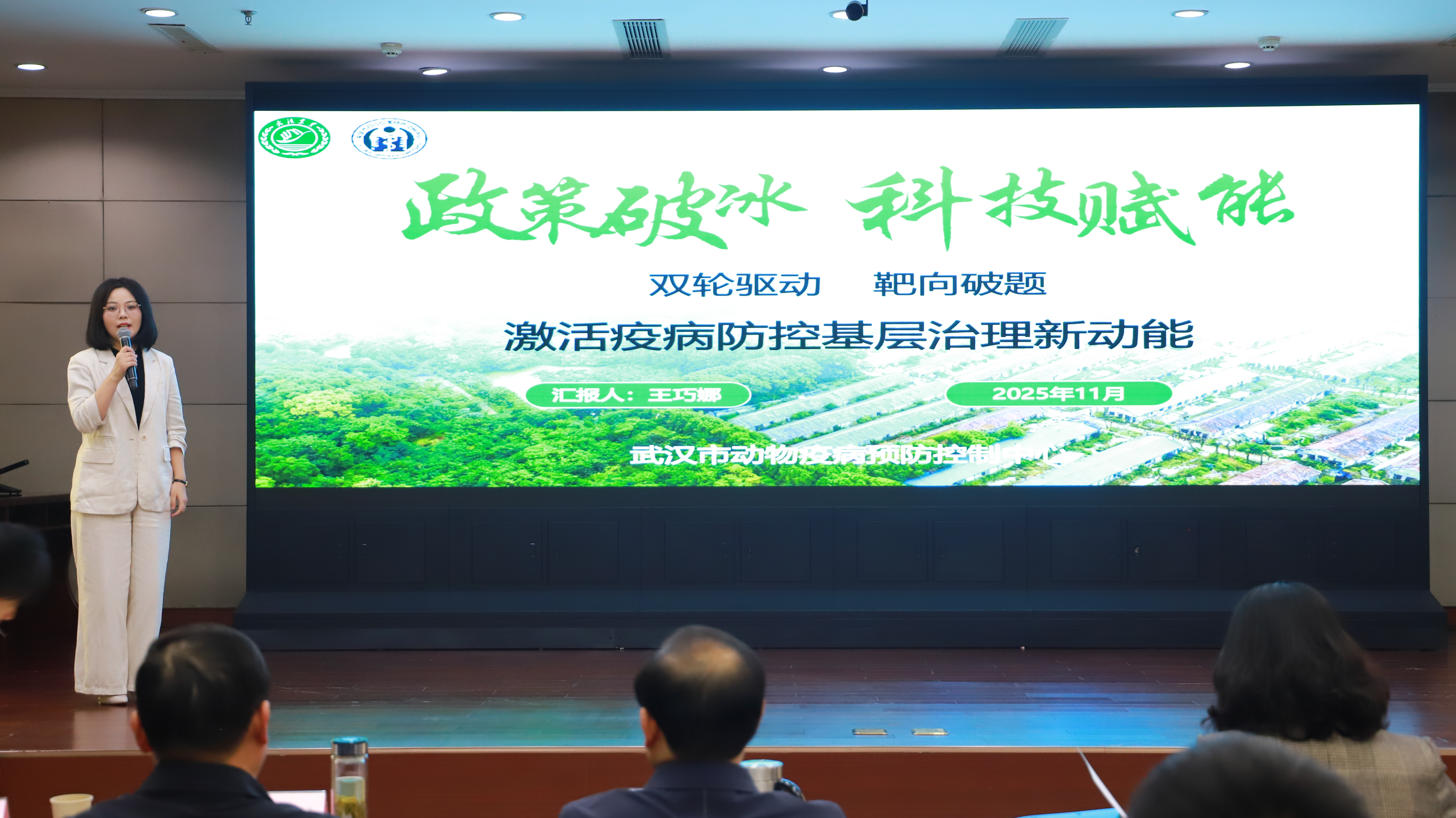 我是来自防控中心的王巧娜,今天汇报的主题是“政策破冰 科技赋能 双轮驱动 靶向破题——激活疫病防控基层治理新动能!”